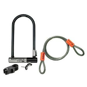 Great value package containing reinforced flat key operated KryptoLok standard sized U-lock and 120 cm long Kryptoflex braided steel cable.